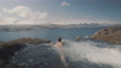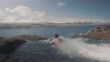 Relaxed female tourist enjoys swimming in an outdoor hot spring. Iceland - 4K Stockvideo