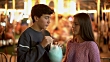 MS Teenage couple sharing cotton candy at a carnival at night - 4K Stockvideo