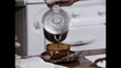 Close-up shot of a women's hand fetching a coffee pot from a cooker hob and pouring it into a brown china cup on the kitchen table. A man's hand, smoking a cigarette, is just visible on the left; 1968. (LDC5230W - AEVZ001J)