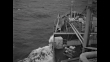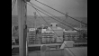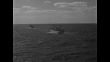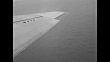 Aerials SS Cecil N. Bean tows SS Henry Ward Beecher in Atlantic Ocean / VS aboard vacated Beecher, life rafts stacked on deck / airplane wing as it flies over ocean and USAT Saturnia / fly around Saturnia