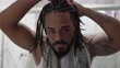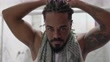 Afro man wiping his face with a towel in the bathroom - 4K Stockvideo