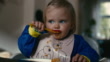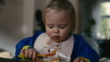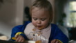 Baby girl eating mashed potatoes and carrot. - HD Stockvideo