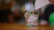 Bartender making whiskey on the rocks on the bar counter.