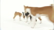 Basenji dogs gather around a food dish. - HD Stockvideo