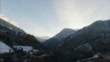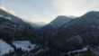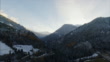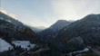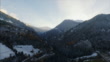 Beautiful aerial drone shot over the cold landscapes of Switzerland, camera tracks up to reveal the dark depths of the Alp mountains.