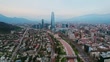 Bird's eye view establishing the financial center of Santiago Chile in the Providencia sector, Costanera tower. - 4K Stockvideo