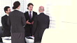 HD1080p: Small group of satisfied business people handshaking at the table in the cafe.
