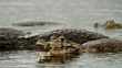 Caiman (Caiman yacare) grabs hawk moth (Aellopos species) as it comes down to drink from pool. (Core Number: FKAY491X)