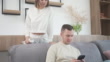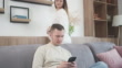 Careless Boyfriend Getting Caught By His Jealous Female Texting Messages On Smartphone And Gets A Slap - 4K Stockvideo