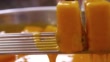 Castella being covered with the egg yolk in Nagasaki, Japan - HD Stockvideo