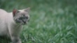 Cat looking around and walking away in the backyard. ,Happy cat ,Thailand ,Playful Pets