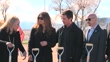 PALMDALE, CALIFORNIA - FEBRUARY 7: Christian Bale, Sibi Blazic, Tim McCormick, Eric Esrailian, Austin Bishop, Kathryn Barger, Brandon Nichols and guests prepare to shovel dirt as Together California breaks ground on a new foster care center with Co-Founder Christian Bale on February 7, 2024 in Palmdale, California. (Footage by New Vision/Getty Images)