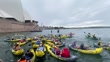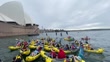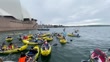 SYDNEY, AUSTRALIA - OCTOBER 26: Climate activists kayak from Kirribilli to the Sydney Opera House on October 26, 2025 in Sydney, Australia. Rising Tide Australia organizes climate action events across cities, bringing together communities to advocate for a fossil-free future and environmental justice through peaceful protests, educational forums and public engagement initiatives. (Footage by Lisa Maree Williams/Getty Images)