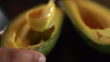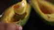 Close up hand mixing avocado fruit and honey