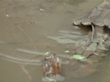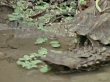 WWWA: STRANGE CREATURES OF THE AMAZON: * LA MS Matamata sidenecked turtle walking through vegetation down riverbank & into water.
