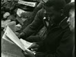 B/W close up of 3 black men reading newspaper / Depression / SOUND