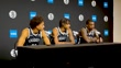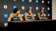 NEW YORK, NEW YORK - OCTOBER 2: Dariq Whitehead #0 of the Brooklyn Nets (R) speaks on being part of the team as Jalen Wilson #22, and Noah Clowney #21 listen during Brooklyn Nets Media Day at HSS Training Center on October 2, 2023 in New York City. (Footage by Mike Lawrie/Getty Images)