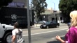 BEVERLY HILLS, CALIFORNIA - JULY 16: Dave Weintraub and Mary Carey walk along Robertson Boulevard on July 16, 2008 in Beverly Hills, California. (Footage by London Entertainment/GC Video)