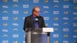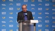 INGLEWOOD, CALIFORNIA - FEBRUARY 1: Dean Spanos speaks to Jim Harbaugh as a coach and the reaction of the fan base as the Los Angeles Chargers introduce their new Head Coach at YouTube Theater on February 1, 2024 in Inglewood, California. (Footage by Gary Jaquez/Getty Images)