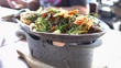 Deep-Fried Snakehead Fish in Spicy Sour Soup in pan is boat shape at restaurant - 4K Stockvideo