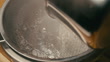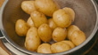 A close-up view of draining cooked new potatoes through a sieve in a home kitchen