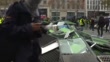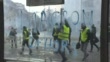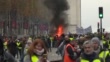 Explosion in a protest barricade bricks tear gas violent clashes erupt on the Champs Elysees in Paris as thousands of yellow vest wearing protesters battle with police (Footage by AFPTV via Getty Images)