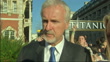 CLEAN: Exterior shot James Cameron talks on the red carpet at the Titanic 3D premier on the lasting fascination with the Titanic & his 3D film James Cameron Talks about Titanic on March 27, 2012 in London, England (Footage by Sky News/Getty Images)