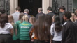 CLEAN: Exterior shots of Prime Minister Keir Starmer leading Formula One teams, drivers and apprentices including CEO of the Formula One Group Stefano Domenicali, Oliver Bearman and Alexander Albon inside Downing Street to celebrate 75 years of Formula One Championships ahead of the British Grand Prix on 2nd July 2025 in London, England, United Kingdom