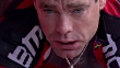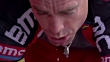 Extreme close-up in slow motion of Cadel Evans dripping sweat as he warms up for the prologue of the 2012 Tour de France