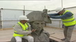 Former Blue Peter presenters scale Nelson's Column; ENGLAND: London: Trafalgar Square: Nelson's Column:EXTFormer Blue Peter presenters John Noakes and Peter Purves pose for press photographer at top of Nelson's Column (4 SHOTS)