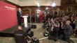 General Election 2017: Campaigning resumes following Manchester Arena terror attack / terrorism debate; ENGLAND: London: Westminster: INTJeremy Corbyn (Labour Leader) stands with others for minute's silence (in memory of vicitms of Manchester Arena attack) ahead of speech - Baroness Chakrabarti (Shami Chakrabarti, Shadow Attorney) and Diane Abbott (Shadow Home Secretary) stand alongside Corbyn/Jeremy Corbyn applauded as to stage/ Jeremy Corbyn speech SOT- we must be brave enough to admit that the war on terror is not working/ we need asmarter way to reduce the threat from countries that nurture terrorists and generate terrorism/- (re troops deployed on British streets) you're doing your duty as you have done so many times before/ I want to assure you that under my leadership you will only be deployed abroad when there is a clear need and only when there is a plan that you have the resources to do your job and secure an outcome that delivers lasting peace/London: INTAmber Rudd (Home Secretary) interview SOT- (re Jeremy Corbyn comments) I think that's absolutely outrageous/ the time to debate foreign policy with Jeremy Corbyn could be in the House of Commons, but to suggest that there is any link, any justification for the events that took place on Monday night in Manchester with the UK's foreign policy is outrageous/ Cheshire: Warrington: EXTTim Farron (Lib Dem Leader) greeted by Colin Parry (whose son Tim Parry was killed in IRA bomb attack in Warrngton in 1993) and others/ Tim Farron interview SOT- I disagree with Jeremy Corbyn's point, but I disagree enven more stongly with his timing in making that point