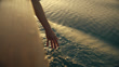 Slow motion shot of an unrecognizable woman caresses the water surface with her hand while she sits on the bow of a sailboat at sunset. Shot capturing the sheer joy and tranquility of the moment. As the sun dips below the horizon, the awe-inspiring scenery, creating a scene that epitomizes the sheer bliss of sunset at sea. The footage was recorded in 8K resolution.