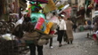 SLO MO Handheld Shot of Man Selling Household Tools while Walking on Street in City at Istanbul,Turkey - 4K Stockvideo