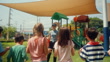 Happy children practices the balance equipment before morning exercise class at an international school. - 4K Stockvideo