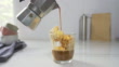 Homemade Affogato, Italian Moka coffee pot, affogato is a dessert with coffee as a base ingredient typically scooping a scoop of gelato or vanilla ice cream into a cup. Then pour one shot of hot espresso. - 4K Stockvideo