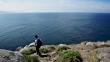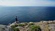 WS Male Traveler at the end of the Camino in Finisterre - HD Stockvideo