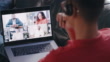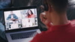 Man person on a zoom call. A person on a conference call during lockdown. Closeup of individual sitting on a skype call