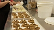 Medium zoom in shot of baker brushing cookies with icing / Salt Lake City, Utah, United States - HD Stockvideo
