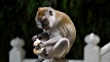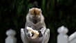 Aap eten brood bij de Batu caves - 4K Stockvideo