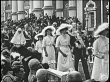 Czar Nicholas II walks in a procession with his family and Russian Orthodox Church clergy members.