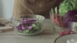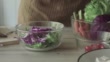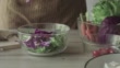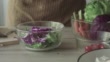 Mensen koken voedsel van maken salade groenten worden in de paarse kool, Ijsbergsla op de Een kom - HD Stockvideo