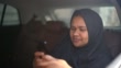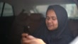 Portrait of Arab Middle East woman using mobile at car