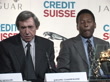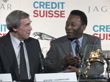 Footballers lives: Press conference; ENGLAND: London: Royal Academy:INTPress conference breaks up / Pele (Former Brazilian Footballer) and Gordon Banks (Former England goalkeeper) posing with framed photograph of Banks saving header from Pele in the 1970 World Cup finals / Pele (Former Brazilian Footballer) and Gordon Banks (Former England goalkeeper) press conference SOT.