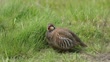 A pretty Red-Legged Partridge, Alectoris rufa, resting in a field. - HD Stockvideo