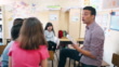 Real time video of Primary School Teacher working with 4th grade students in Classroom
