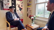 Illustration: Ralph Steadman interview; ENGLAND: London: Pinner: Heath Robinson Museum:INTRalph Steadman (Illustrator) interview with Greg Ockrim (ITV News Reporter) in shot SOT