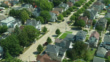 Aerial establishing shot of a residential neighborhood Fond du Lac, Wisconsin on a sunny day in summer.