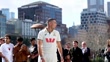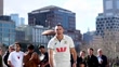 MELBOURNE, AUSTRALIA - AUGUST 13: Scott Boland of Australia bowls to a young cricketer during a media opportunity announcing 100 Days Until The Ashes cricket series at Queensbridge Square on August 13, 2025 in Melbourne, Australia. (Footage by Josh Chadwick/Getty Images)