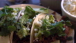 Zijschot van sommige heerlijk kijkende straattaco's die met Carne Asada, Cilantro, Cotija Kaas en Limoenen worden gevuld. - 4K Stockvideo