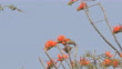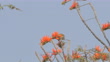 Streak-eared Bulbul eating pollen of Red cotton tree flowers dried on treetop.